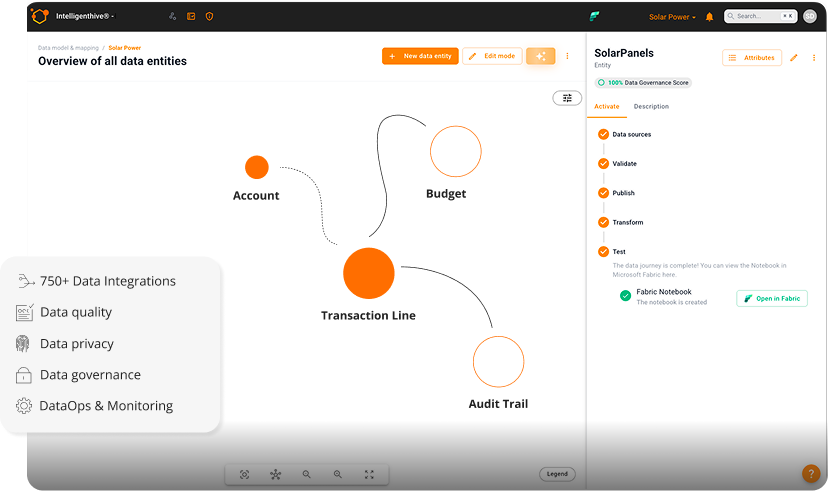 Een standaard Fabric-implementatie geeft je een leeg canvas. De Intelligenthive® geeft je een volledig platform: IntelligentModel als businessfundament, AI-gestuurde automatisering, ingebouwde governance, datakwaliteit, 750+ connectoren en 24/7 beheer. Je begint niet van nul; je begint klaar.